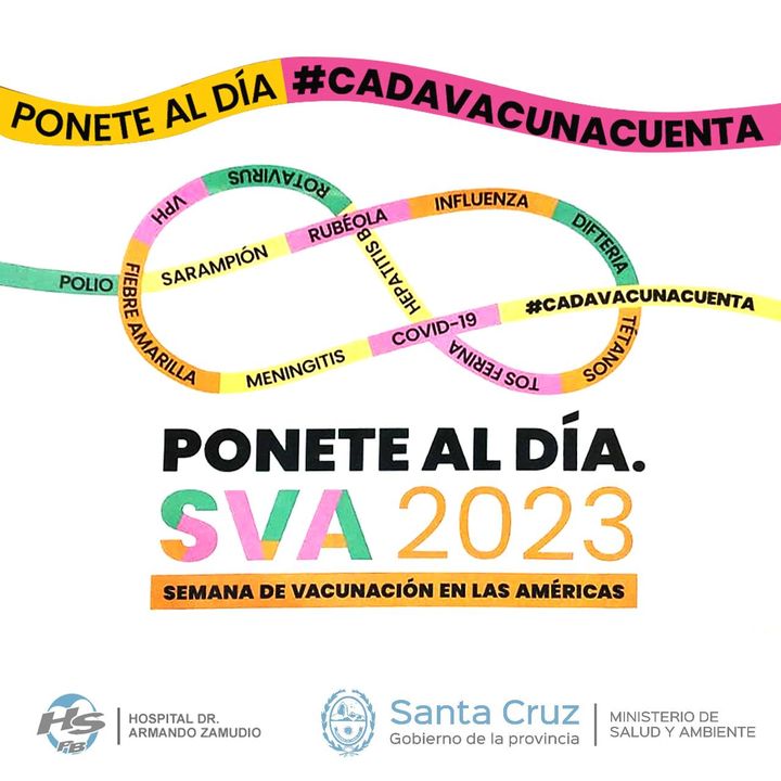 En el marco de la Semana de Vacunación de las Americas , el Servicio de Inmunizaciones del Hospital Seccional Dr. Armando Zamudio invita a la comunidad a acercarse el día domingo 23/4 de 15 a 18hs al Movil Sanitario que se ubicará en la intersección de las Calles Pje Bernardo O’Higgins y 25 de Mayo ( frente a Nexus) donde se realizará vacunación conforme al Calendario Nacional de Vacunación 2023. ¡Los esperamos!